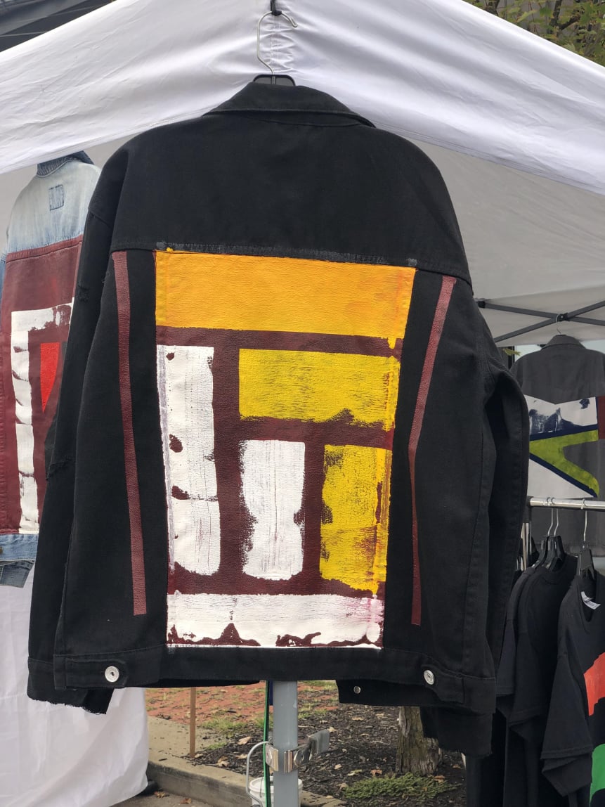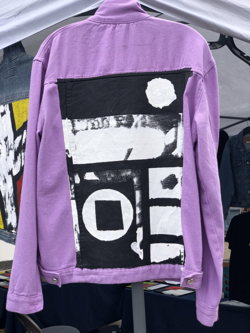 We have original jean jackets, 12x12 inch tiles, custom large scale paintings (up to 8x8ft or larger), prints, art t-shirts, new for 2026 Venetian style wall Art. We come to your home and paint directly on your walls!